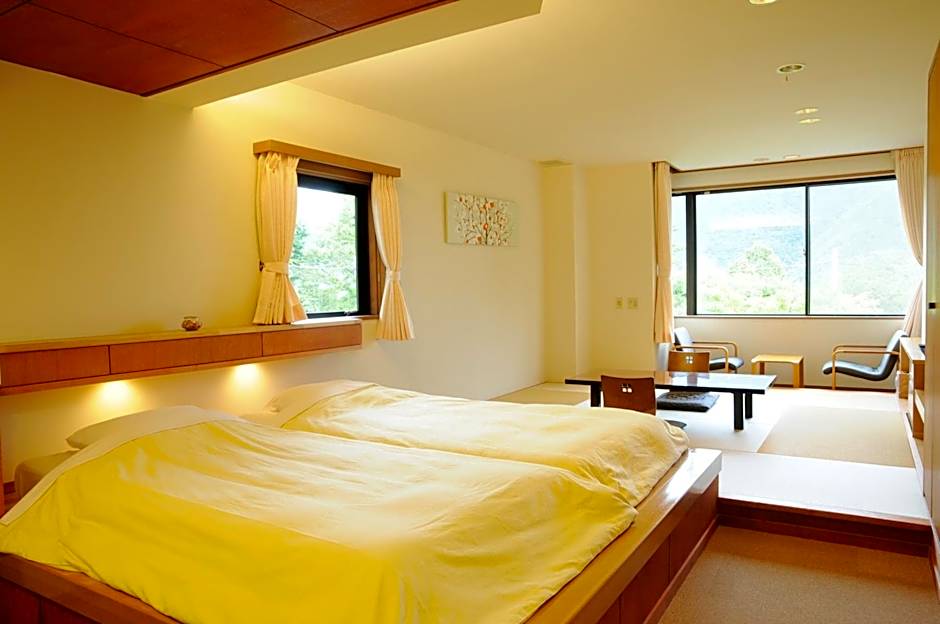 As comodidades incluem um restaurante, estacionamento privativo gratuito, Wi-Fi gratuito e ar-condicionado, além de vista para a montanha e banho termal gratuito. O estacionamento no local é gratuito; há quartos para não fumantes, bidê, jardim e vista disponíveis. Massagens e refeições para crianças são oferecidas por custo adicional.